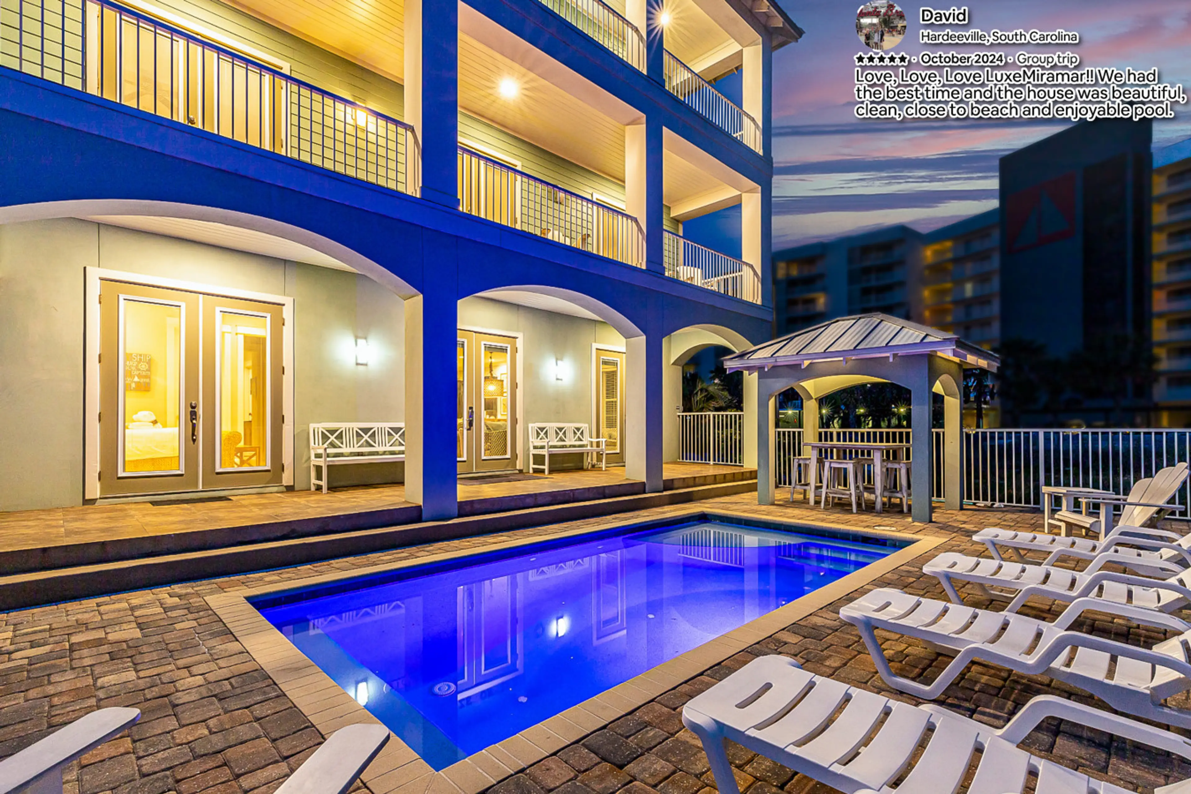 Located directly across the street from the beach, a stunning setting for your next Emerald Coast getaway. Soak up the sun by your private saltwater pool after fun-filled mornings on the world-famous sands of Miramar Beach. |The Space| (See detailed floor plan picture) Indoors: -- 7 plush bedrooms ...